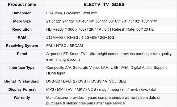 Our factory with more than 17 years of tv production experience. We can produce 15-85 inch tv. Size 15-28 loading exported 5-8 containers per month. 32-65 inch tv 5 containers per month.